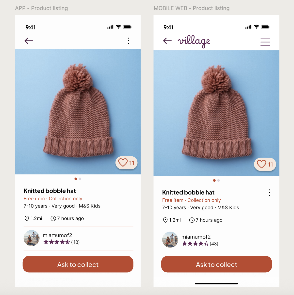 This created a clear opportunity: Pass It On could offer a trust-driven, friction-free experience tailored specifically for children’s clothing – leveraging the personalisation and established patterns already built into Village.