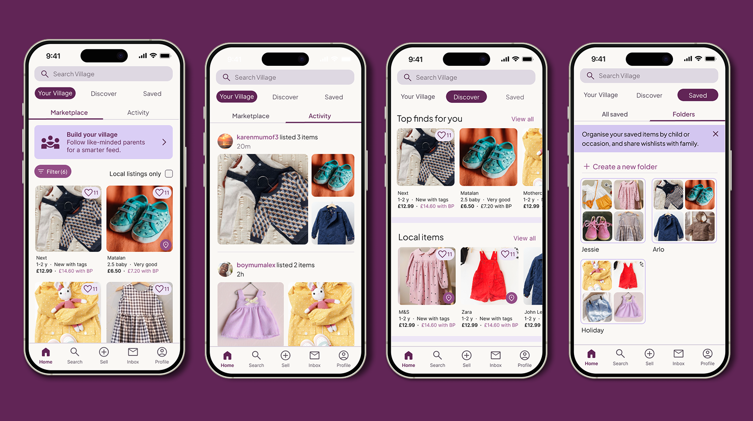 Village is a concept for a parent-to-parent resale app that makes second-hand shopping feel more personal, relevant, and enjoyable.